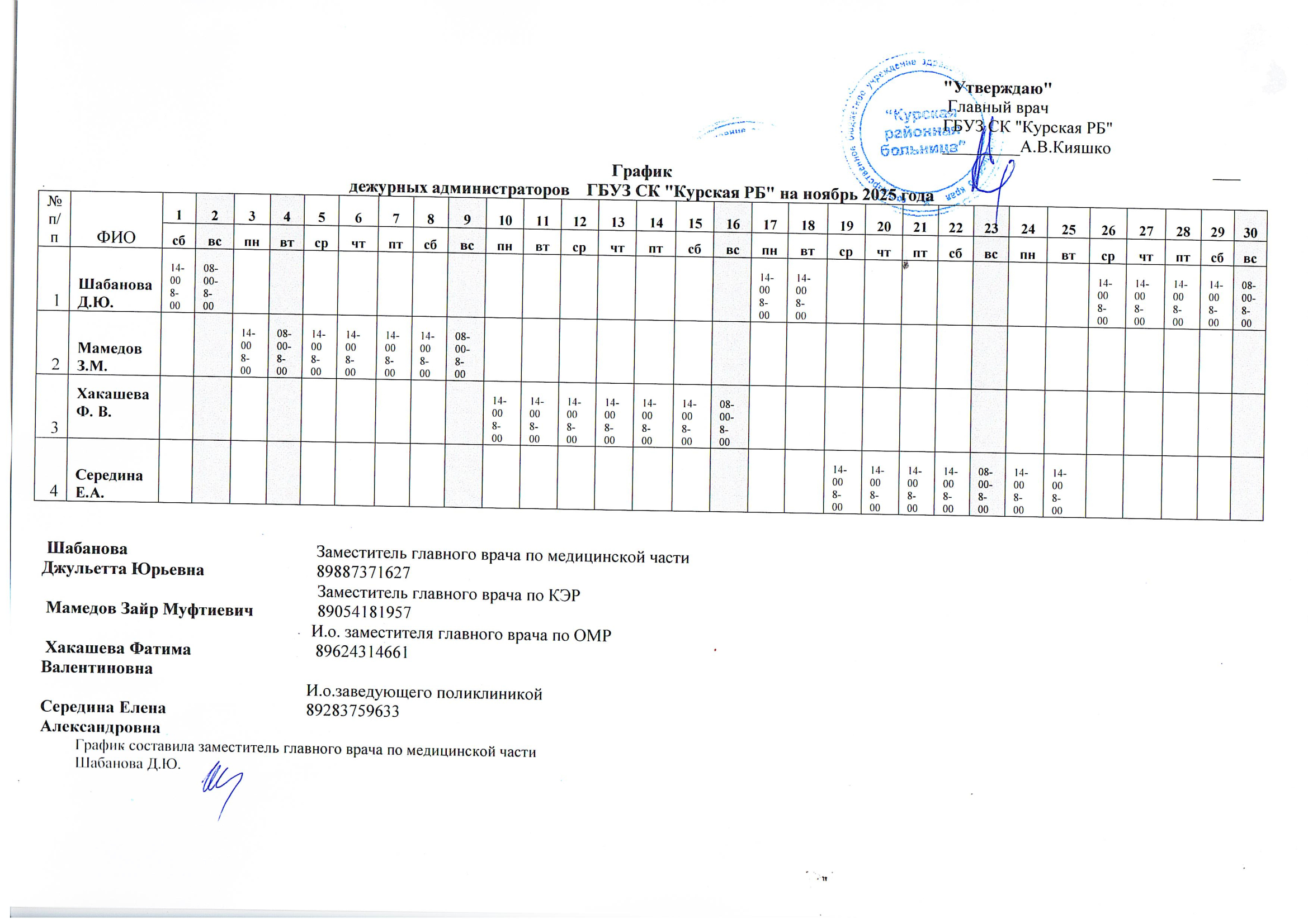 Наименование структурных подразделений ГБУЗСК «Курская «РБ».